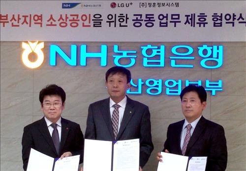 (서울=연합뉴스) 전성훈 기자 = LG유플러스[032640]는 NH농협은행 부산영업본부·정훈정보시스템과 업무협약(MOU)을 맺고 부산지역 소상공인의 성공적인 사업 운영을 돕는 'LG유플러스 알뜰팩'을 출시한다고 5일 밝혔다.