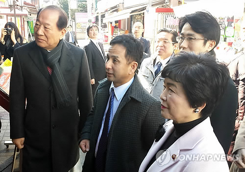 (도쿄=연합뉴스) 이세원 특파원 = 일본의 연립 여당인 공명당이 6일 '혐한'(嫌韓) 시위가 빈발한 도쿄의 한인 상점가를 방문해 '헤이트 스피치'(hate speech·특정 집단에 대한 공개적 차별·혐오 발언 및 시위)로 인한 피해 실태를 청취했다.