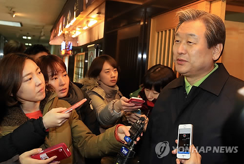 | △ 야당 대표 당선 입장 밝히는 김무성 대표 (서울=연합뉴스) 홍해인 기자 = 새누리당 김무성 대표가 8일 오후 서울 여의도의 한 일식당에서 열린 당 지도부-최고위원 만찬에 참석하며 새정치민주연합 문재인 대표 당선에 대한 입장을 밝히고 있다. 2015.2.8 hihong@yna.co.kr |