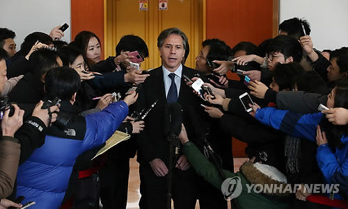 블링큰 부장관의 이번 방한에는 미국측 6자회담 수석대표인 성김 국무부 대북정책 특별대표 겸 동아태 부차관보도 수행했다.
