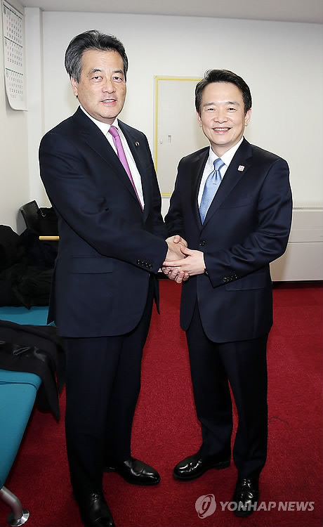 오카다 가쓰야 민주당 대표와의 면담에서도 남 지사는 인류보편적 가치 존중을 통한 미래지향적 관계 개선을 강조하고 한일 정상회담의 조기 성사 필요성을 역설했다.