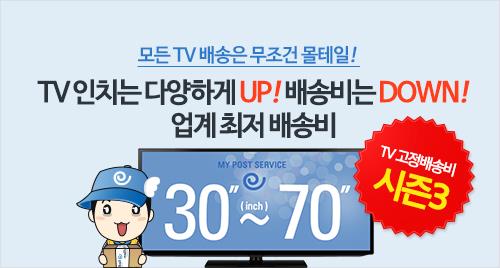 몰테일은 지금까지 55·60·65인치 TV에만 이 '고정 배송비' 제도를 적용했으나 5월말까지 혜택 대상을 30∼35인치와 70인치 제품까지 확대하기로 했다. 이에따라 30∼35인치와 70인치의 배송비는 각각 49달러, 249달러로 고정된다.