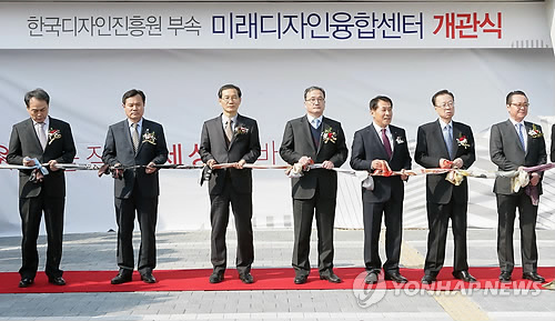| △ 미래디자인융합센터 개관식 (서울=연합뉴스) 10일 경남 양산에서 열린 '미래디자인융합센터' 개관식에서 참석자들이 스카프 커팅을 하고 있다. (산업통상자원부 제공) |