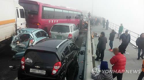 오늘 오전 9시 45분께 인천시 중구 영종대교 서울방향 상부도로 13.9km 지점에서 승용차, 공항리무진버스 등 60대 이상 차량이 추돌하는 사고가 발생했다. 경찰에 따르면 이 사고로 오전 11시 현재 사망 1명, 부상 30여명의 인명피해가 발생했다. 사망자는 승합차에 타고 있던 김모(51)씨로 경기도 고양시 명지병원으로 시신이 후송되고 있다. 부상자는 인천시 서구 나사렛병원, 국제성모병원 등으로 이송됐다. 경찰과 소방당국은 영종대교 상부도로 서울방향 통행을 전면 통제하고 사고 현장을 수습하고 있다. 인천공항 방면은 일부 차로가 통제되고 있다.