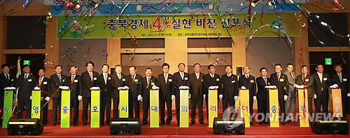 | △ "4% 경제 만들자"…충북도, 비전 선포식 (청주=연합뉴스) 심규석 기자 = 이시종 충북지사는 12일 라마다플라자 청주호텔에서 '충북경제 4% 실현 비전 선포식'을 열고 '2020 발전 전략'을 발표했다. 2015.2.12 <<충북도 제공>> ks@yna.co.kr |
