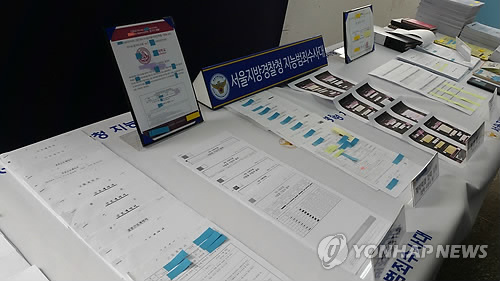| △ '계약학과' 악용해 부정 입학시킨 일당 적발 (서울=연합뉴스) 이태수 기자 = 서울지방경찰청 지능범죄수사대가 '계약학과' 제도를 악용해 학생들을 대학교에 부정입학시켜준 혐의(업무방해)로 세종대 미용관련 학과장 유모(44·여) 교수 등 19명을 불구속 입건했다고 밝힌 12일 서울 중랑구 지능범죄수사대에서 경찰 관계자가 증거 및 압수품을 공개하고 있다. 2015.2.12 tsl@yna.co.kr |