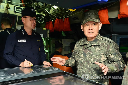 최 의장은 "북한은 잠수함 탄도미사일(SLBM)을 탑재할 수 있는 잠수함 개발과 신형 고속침투선박(VSV) 건조 등 비대칭 전력 증강과 강도 높은 동계훈련, 공격 양상 변화 등의 동향을 보이고 있다"면서 "적이 도발할 때는 '한방에 격침'(One Soht, One Sink) 할 수 있는 작전수행 능력을 갖춰 달라"고 당부했다.
