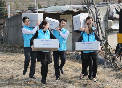 | △ 설을 앞둔 12일 현대제철 직원들이 서울 양재동 소외계층 주민에게 전달할 설 선물을 배달하고 있다. |