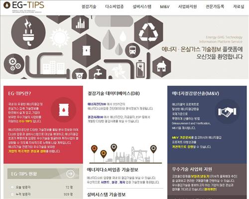 | △ 에너지관리공단이 12일 오픈한 '에너지·온실가스 기술정보 플랫폼 서비스(EG-TIPS·tips.kemco.or.kr)'. |