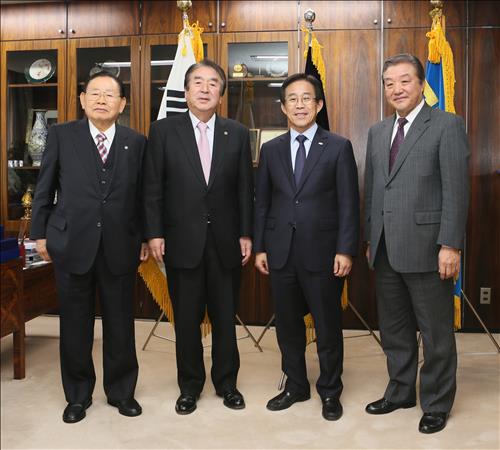 | △ 지난 1월 29일 재일본대한민국민단을 방문한 이창섭 국민체육진흥공단이사장이 오공태 단장 등과 간담회를 갖고 재일 차세대의 모국유학 장학금 지원사업을 2019년까지 5년 연장할 뜻을 전했다. 왼쪽부터 김한익 민단 의장, 오공태 단장, 이창섭 이사장, 한재은 감찰위원장 |