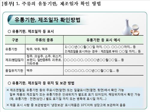 이밖에 소주, 과실주, 위스키, 브랜디, 리큐르, 일반증류주 등 다른 종류의 술에는 제조연월일만 표기돼 있다.