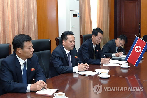 | △ 작년 7월 평양에서 몽골 대표단과 회담하는 리룡남 북한 대외경제상(가운데). <<자료사진>> |