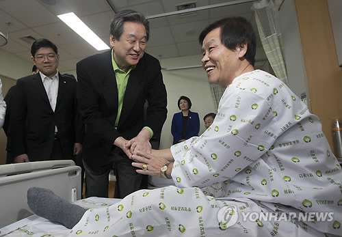 | △ 보훈병원 찾은 김무성 대표 (서울=연합뉴스) 윤동진 기자 = 새누리당 김무성 대표가 설 명절을 앞두고 15일 오후 서울 강동구 중앙보훈병원을 방문해 국가유공자를 위문하고 있다. |