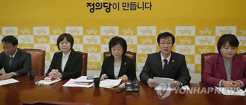 (서울=연합뉴스) 강건택 기자 = 정의당은 16일 긴급 의원총회를 열어 이날 국회 본회의에서 진행될 이완구 국무총리 후보자의 임명동의안 표결에 불참키로 결정했다.