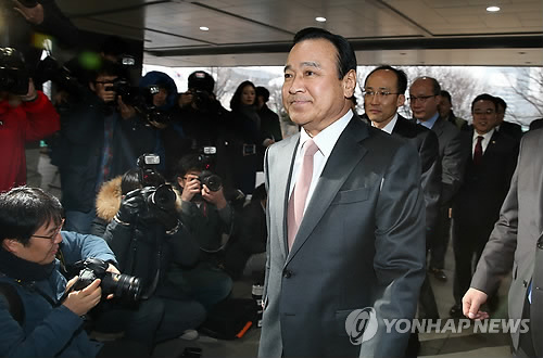| △ 정부서울청사 들어서는 이총리 (서울=연합뉴스) 전수영 기자 = 이완구 신임 총리가 17일 오전 서울 세종로 정부서울청사로 첫 출근하고 있다. |