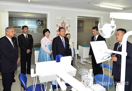 | △ 허종만 조선총련 의장(가운데)이 작년 9월 평양 류경구강병원을 둘러보는 모습. (연합뉴스 자료사진) |