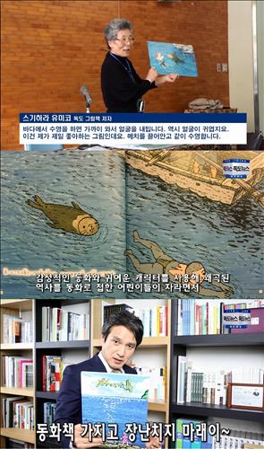 "그냥 보시면 아주 귀여운 강치를 캐릭터로 내세워 만든 동화인데요. 여기에는 많은 문제가 숨어 있습니다"라고 지적한다.