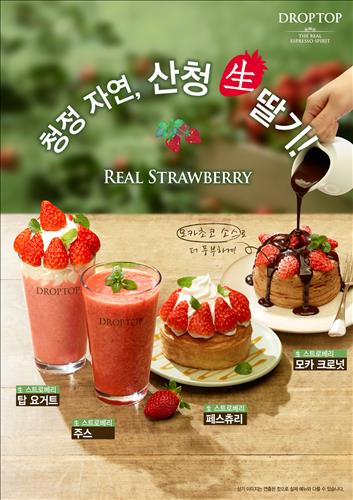 (서울=연합뉴스) 신호경 기자 = 커피전문점 드롭탑이 질 좋은 경남 산청 딸기를 사용한 네 가지 종류의 '리얼 스트로베리' 메뉴를 27일 선보인다.