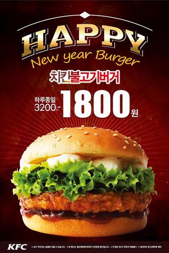 (서울=연합뉴스) 신호경 기자 = KFC(www.kfckorea.com)가 개학·개강을 앞둔 학생들을 위해 다음 달 5일까지 치킨불고기 버거(단품)를 정상가(3천200원)보다 약 44% 싼 1천800원에 내놓는다.