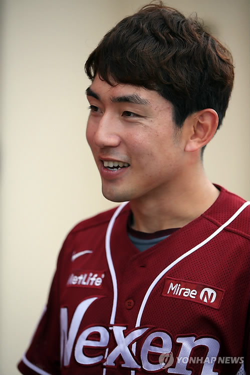 | △ 밝게 웃는 넥센 서건창 (우루마<일본 오키나와현>=연합뉴스) 홍해인 기자 = 프로야구 넥센 히어로즈의 서건창이 23일 오후 일본 오키나와현 구시가와 구장에서 열린 실내 훈련을 마친 뒤 취재진과 인터뷰를 하고 있다. 넥센은 이날 SK와의 연습경기가 우천 취소되며 구시가와 구장에서 실내외 훈련을 가졌다. 2015.2.23 hihong@yna.co.kr |