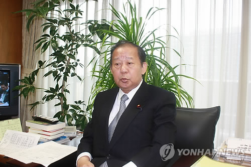 | △ 인터뷰하는 니카이 일본 자민당 총무회장 (도쿄=연합뉴스) 조준형 특파원 = 최근 일본 관광업계 종사자 등 1천400명과 함께 한국을 방문한 니카이 도시히로(二階俊博) 자민당 총무회장이 23일 도쿄 지요다(千代田)구의 자민당 본부 총무회장실에서 연합뉴스와 인터뷰하고 있다. 2015.2.23 jhcho@yna.co.kr |