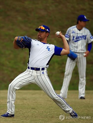 | △ (온나<일본 오키나와현>=연합뉴스) 홍해인 기자 = 프로야구 삼성 라이온즈의 투수 장원삼이 24일 오전 일본 오키나와현 온나 아카마 구장에서 열리는 넥센과의 연습경기에 앞서 몸을 풀고 있다. 2015.2.24 hihong@yna.co.kr |