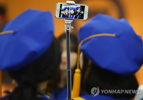 여느 졸업식장과 다른 점은 대다수가 '셀카봉'을 이용해 스스로 자기 사진을 찍어댔다.