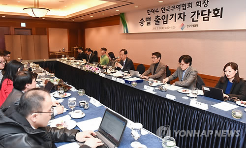 | △ 무역협회 떠나는 한덕수 (서울=연합뉴스) 한덕수 한국무역협회 회장이 24일 서울 삼성동 그랜드인터컨티넨탈호텔에서 출입기자들과 가진 송별 간담회에서 발언하고 있다. (무역협회 제공) |
