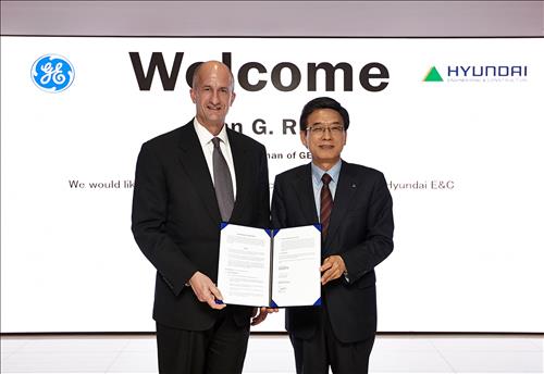 현대건설은 24일 서울 종로구 계동 현대건설 본사에서 제너럴 일렉트릭(GE)과 전 세계 에너지·인프라 사업에 대해 포괄적으로 상호 협력한다는 내용의 양해각서(MOU)를 체결했다고 25일 밝혔다.
