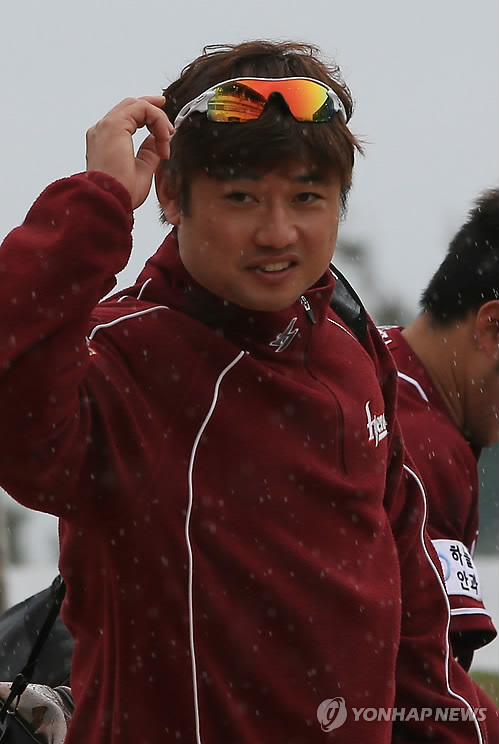 | △ (온나<일본 오키나와현>=연합뉴스) 홍해인 기자 = 일본 언론이 '한신 타이거스가 영입 리스트에 올린 투수'라고 소개한 넥센 히어로즈 마무리 손승락. 손승락이 24일 일본 오키나와현 온나 아카마 구장에서 열릴 예정이었던 삼성과 넥센의 연습경기가 우천 취소되자 짐을 싸 경기장을 떠나고 있다. 2015.2.24 hihong@yna.co.kr |