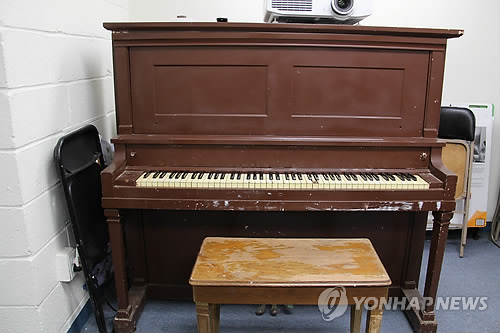 | △ 뉴욕한인교회에 보관중인 안익태의 피아노 (뉴욕=연합뉴스) 박성제 특파원 = 안익태 선생이 애국가를 완성할 때 사용했던 것으로 알려진 피아노. 현재 뉴욕한인교회 지하에 보관중이다. 새 건물이 지어진 이후에는 이 건물 1층에 마련될 역사 기념관에 전시될 예정이다. |