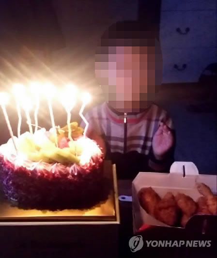 | △ 생일 맞아 웃고 있는 지훈이 (시흥=연합뉴스) 남편을 둔기로 때려 숨지게 한 혐의로 구속된 베트남 출신 귀화 여성의 7살짜리 아들인 지훈(가명)군이 지난달 생일을 맞아 케이크에 초를 꽃아놓고 기뻐하고 있다. 아버지가 사망하고 어머니가 구속되면서 지훈군은 현재 경기도의 한 아동보호기관에서 머무르고 있다. 2015.2.25 << 지훈군 친족 제공 >> photo@yna.co.kr |