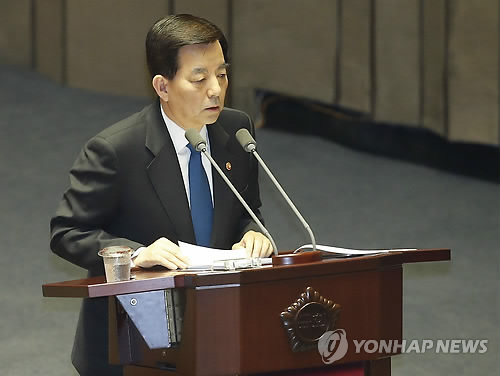 | △ 대정부 질문 답변하는 한민구 장관 (서울=연합뉴스)이상학 기자 = 한민구 국방부 장관이 25일 국회에서 열린 정치·외교·통일·안보 분야 대정부 질문에서 의원들의 질문에 답하고 있다. |