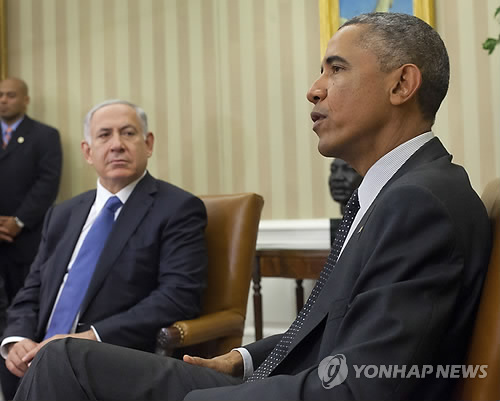 | △ 지난해 10월 1일 미국 백악관에서 열린 정상회담 당시의 버락 오바마 미국 대통령과 베냐민 네타나휴 이스라엘 총리의 모습. |