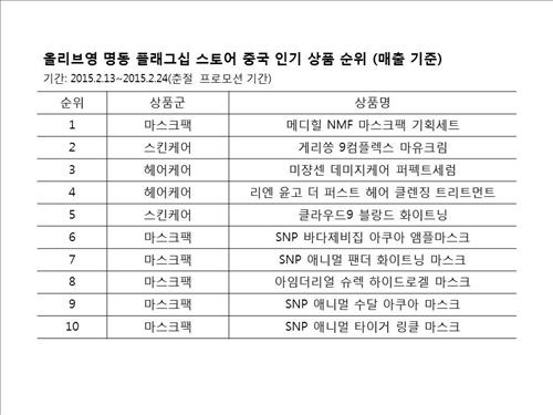 올리브영 "유커, 춘절 연휴에 마스크팩 가장 많이 사"