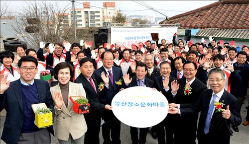 현대차그룹과 광주시가 출범시킨 광주창조경제혁신센터는 26일 광주시 발산마을에서 윤장현 광주시장과 유기호 광주창조경제혁신센터장, 김종웅 기아차[000270] 광주공장장 등이 참석한 가운데 창조문화마을 조성 사업 발대식을 열었다.