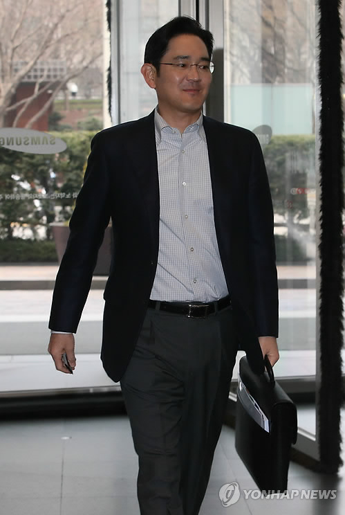 | △ 출근하는 이재용 삼성전자 부회장 (서울=연합뉴스) 서명곤 기자 = 삼성 수요사장단회의가 열린 25일 오전 이재용 삼성전자 부회장이 서울 서초구 서초동 삼성 사옥으로 출근하고 있다. 2015.2.25 seephoto@yna.co.kr |