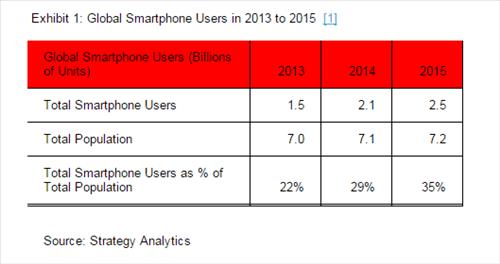 미국 시장조사업체 스트래티지 애널리틱스(SA)는 지난해 스마트폰 사용자가 전년(15억명)보다 37% 증가한 총 21억명으로 조사됐다고 26일 밝혔다.