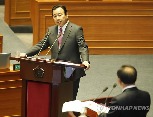 | △ 답변하는 이완구 국무총리 (서울=연합뉴스) 이상학 기자 = 이완구 국무총리가 27일 국회에서 열린 교육·사회·문화 분야 대정부질문에서 의원들의 질문에 답변하고 있다. |