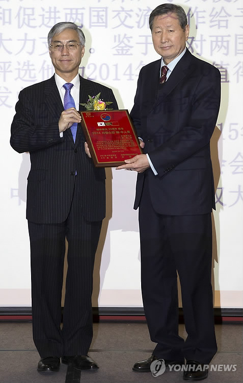 (서울=연합뉴스) 김효정 기자 = 이태식 전 주미대사가 한·중 교류 증진에 공헌한 공로로 사단법인 21세기한중교류협회와 주한 중국대사관이 수여하는 '2014 자랑스러운 한·중인상'을 수상했다.