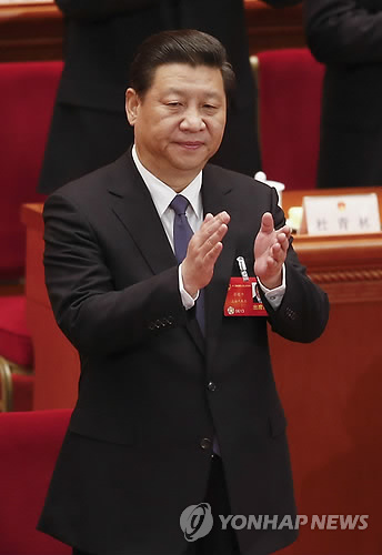 | △ 시진핑(習近平) 중국 국가주석이 지난해 3월 중국 전국인민대표대회 폐회식에서 박수를 치고 있다. (AP=연합뉴스 자료사진) |