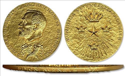이 메달은 1971년 사이먼 쿠즈네츠가 국민소득 이론과 국민소득 통계에 관한 실증적 분석으로 받은 메달이다.