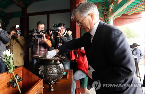 | △ 천안 찾은 문재인 대표 (천안=연합뉴스) 양영석 기자 = 문재인 새정치민주연합 대표가 3·1절을 맞아 1일 천안 유관순열사 사우를 찾아 헌화·분향하고 있다. |