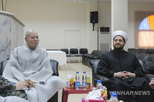 조계종 자승 총무원장 일행, 동명부대 주둔지서 현지 종교지도자 만나