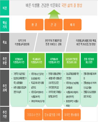 정부는 지방자치단체별로 '식생활교육 기본계획'을 수립하는 한편 '식생활교육 위원회' 구성하고 '식생활교육 조례'를 제정하는 방안도 추진키로 했다.