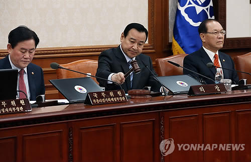 | △ 국무회의 (서울=연합뉴스) 전수영 기자 = 이완구 국무총리가 3일 오전 서울 세종로 정부서울청사에서 열린 국무회의에서 개회를 선언하고 있다. 이총리는 모두발언을 통해 박근혜 대통령의 중동 순방 기간 정부 대책으로 "재난·안전사고 예방과 국가안보 등에 허점이 생기지 않도록 상황관리에 철저해야 한다"고 밝혔다. |