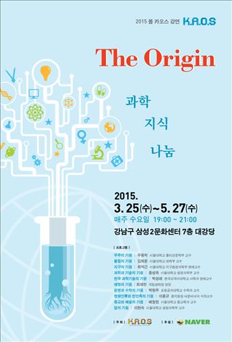 (서울=연합뉴스) 이주영 기자 = 기초과학을 대중에게 쉽고 재미있게 전달하고자 설립된 재단법인 카오스(KAOS, 이사장 이기형 인터파크 회장)가 '기원'(Origin)을 주재로 진행하는 2015년 봄 카오스강연 수강자를 모집한다.