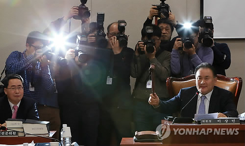 | △ '김영란법' 국회 법사위 통과 (서울=연합뉴스) 홍해인 기자 = 3일 오후 서울 여의도 국회에서 열린 법제사법위원회 전체회의에서 이상민 법사위원장이 일명 '김영란법'(부정청탁 및 금품 등 수수의 금지에 관한 법률 제정안)에 대해 의결하며 의사봉을 두드리고 있다. |