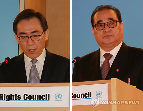 (제네바=연합뉴스) 류현성 특파원 = 남북이 3일(현지시간) 스위스 제네바 유럽 유엔본부에서 열린 유엔 인권이사회에서 북한 인권문제를 둘러싸고 격돌했다.
