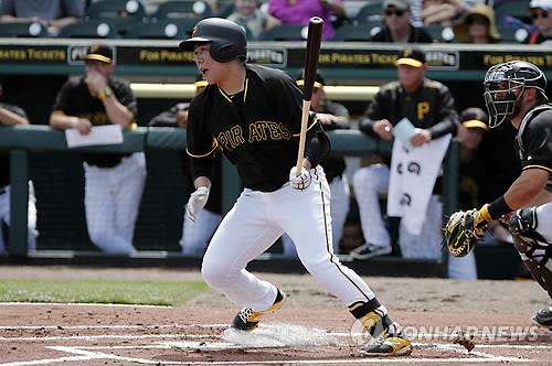 (더네딘<미국 플로리다주>=연합뉴스) 장현구 특파원 = '한국산 거포' 강정호(28·피츠버그 파이리츠)가 미국프로야구 실전 데뷔 경기에서 대포를 터뜨리고 화끈한 신고식을 펼쳤다.